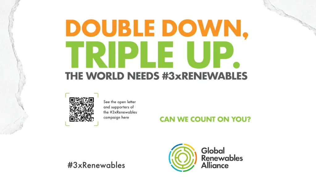 Private and public sectors call for an ambitious global target of tripling total renewable energy capacity to 11 TW by 2030