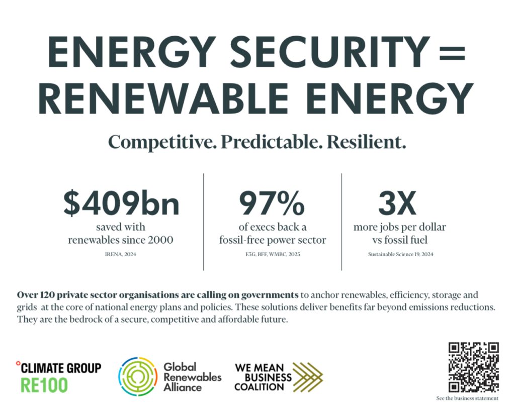 Accelerating renewable deployment is the key to energy security — to cut costs, protect businesses from price shocks, and build a competitive and resilient economy.